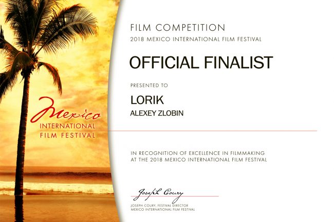 Друзья, творческая группа художественного фильма “ЛОРИК” сообщает, что фильм попал в шорт-лист 10 финалистов Mexico International Film Festival (Мексиканской Международной Кинопремии). Смотрите Official Finalists на сайте http://www.mexicofilmfestival.com/2018-winners